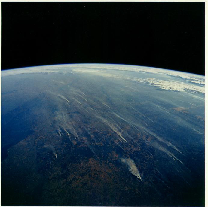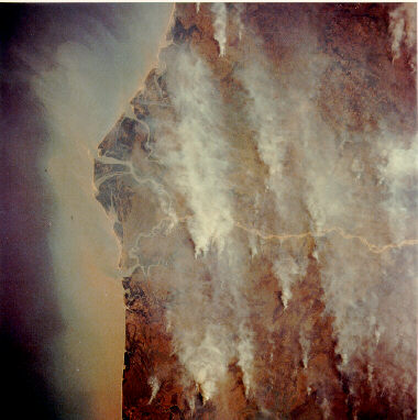 the Zambezi River Delta of East Africa, smoke and smoke plumes